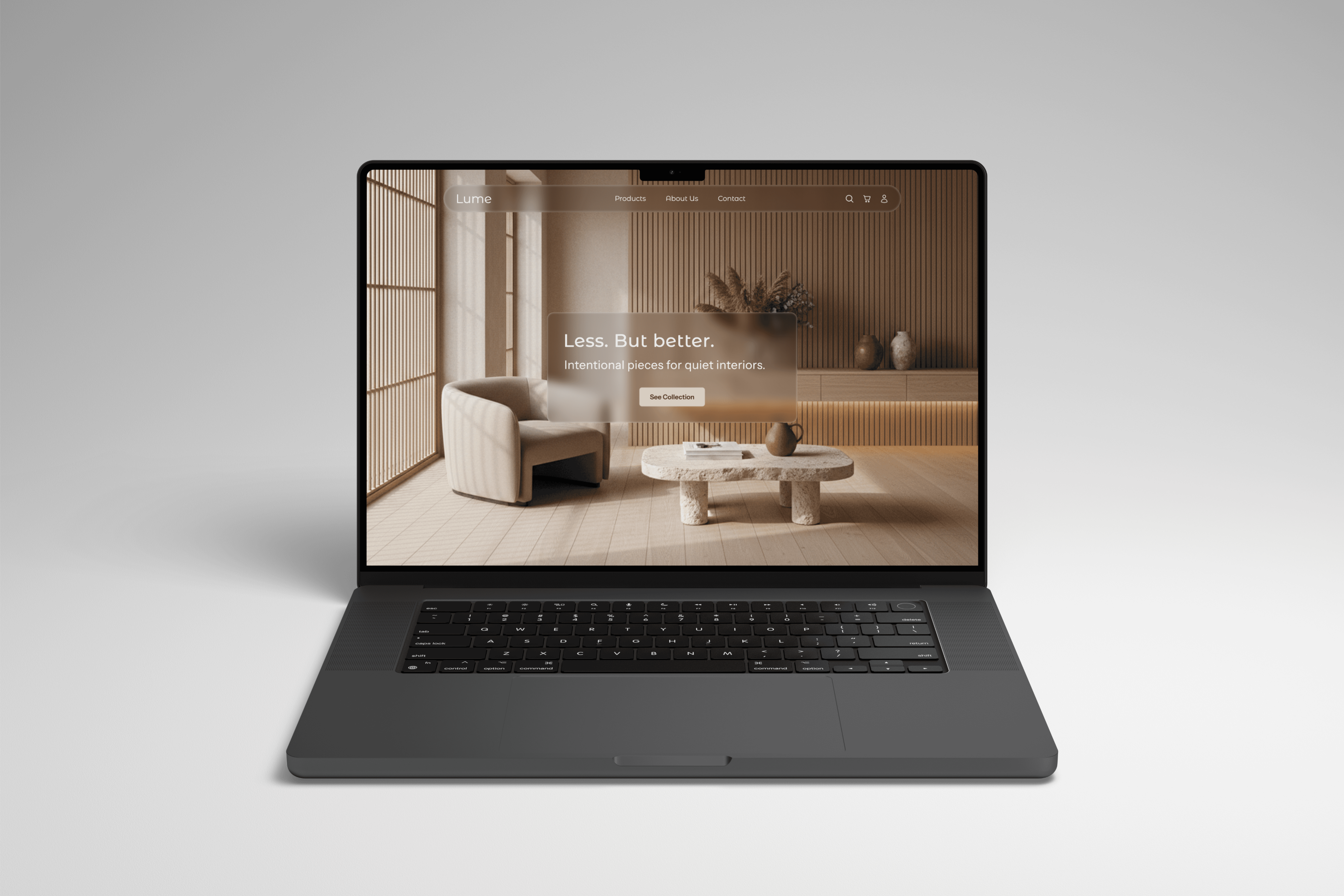 Lume's identity is built around warmth and restraint. A neutral color palette, a text-based wordmark, and a deliberate typography pairing create a brand that feels considered without being loud - letting the products speak first.