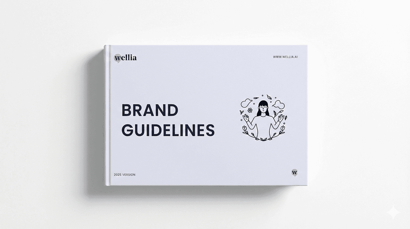 Wellia is a B2B mental health app that uses AI to support employee wellbeing inside organizations. As a product operating at the intersection of technology, psychology, and trust, the brand needed an identity that could feel simultaneously professional and deeply human - credible enough for HR decision-makers, warm enough for the employees using it every day.